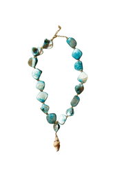 Inspired by ocean treasures, the Emerald Shell Necklace gleams with rich green tones and gold details. Water-resistant and timeless, it’s your statement of calm luxury.