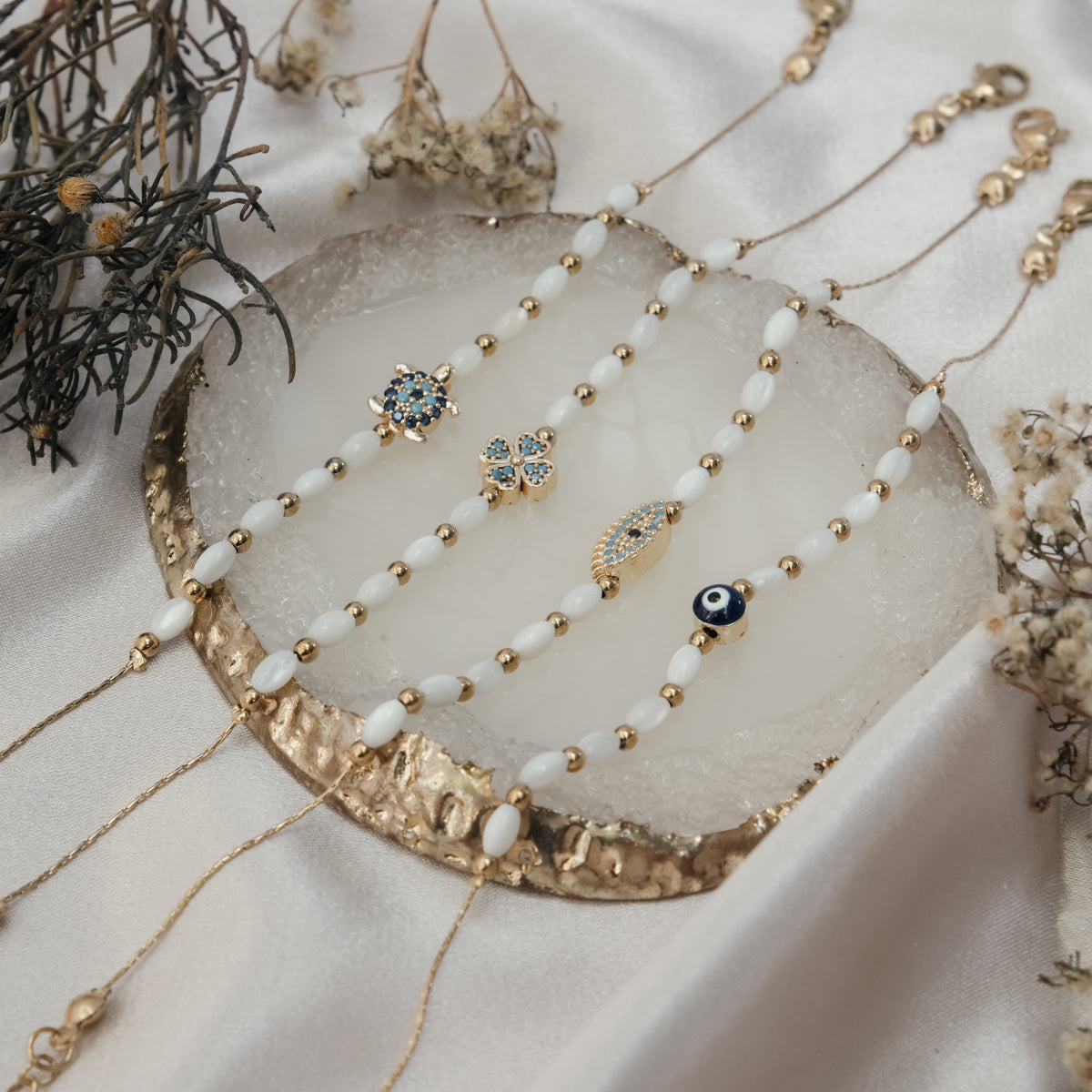 Simple and radiant, this mother of pearl bracelet adds grace and spiritual depth to your wrist. Designed for comfort and beauty, it’s a light-catching piece that fits perfectly into any jewellery stack.